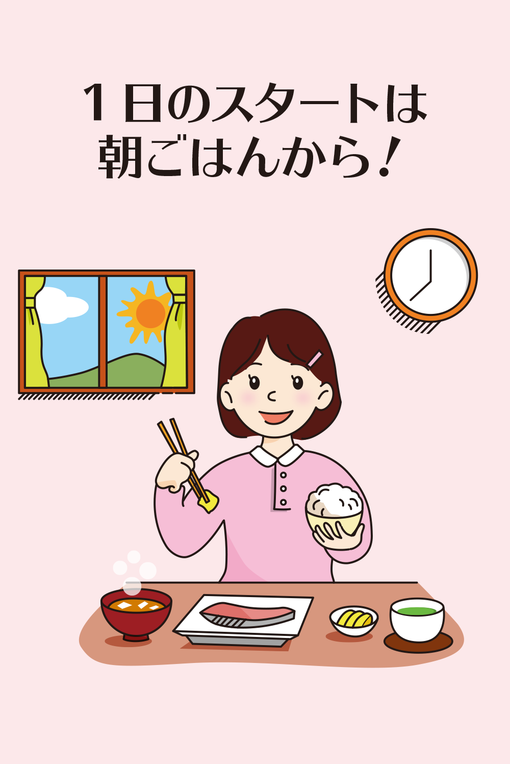 朝食を取る少女の絵